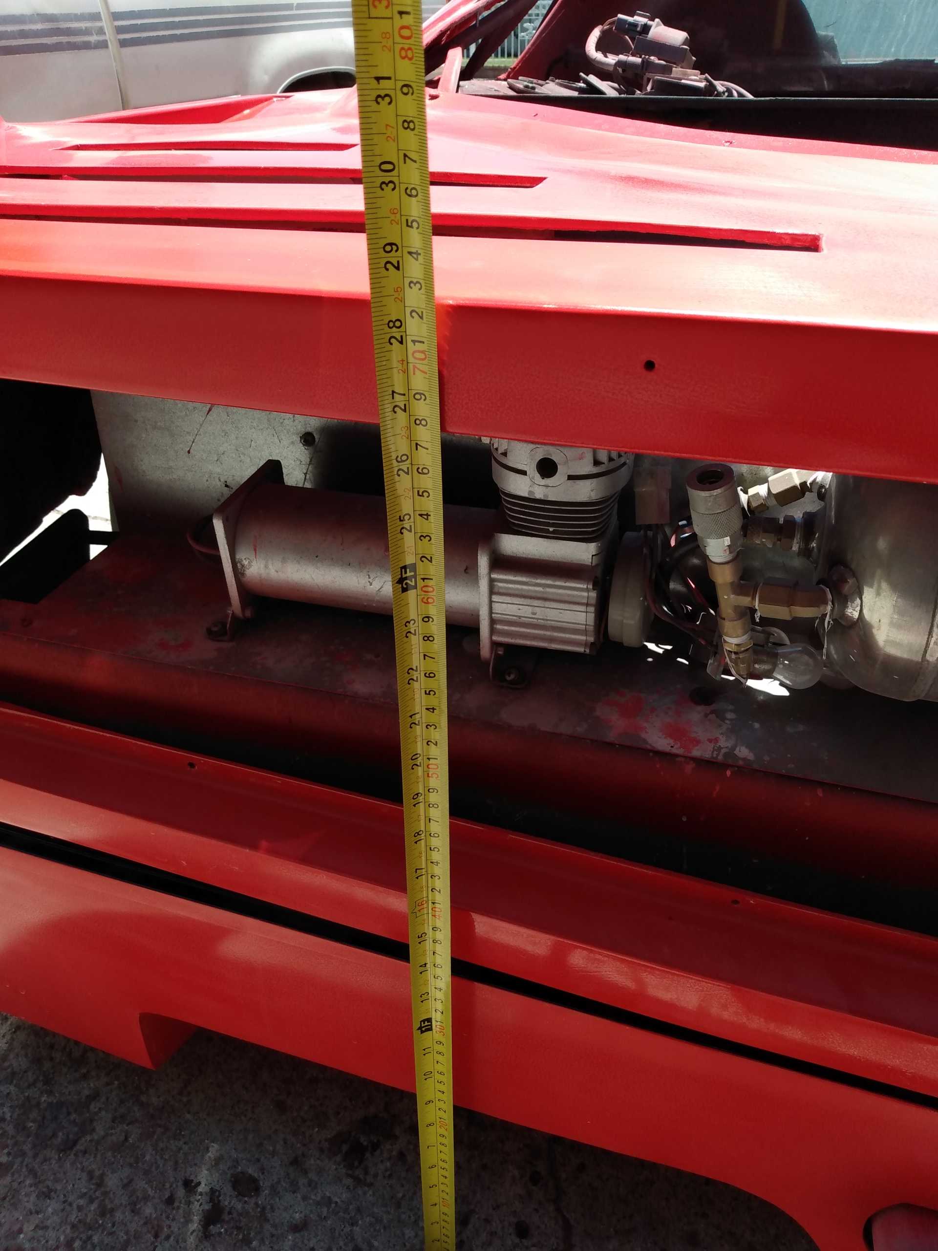 Onto paint- bugged my neighbor a few times for the compressor, couldnt wait lol. Today was the day, wife and kid are away, just me and mom. Dug out all the fittings and hoses and 2 lil 6 gal pancake compressors. Hosed em together and the 60 gal tank on the dead compressor, w a water separator on the outlet line. Hokeyasfuk but it works.