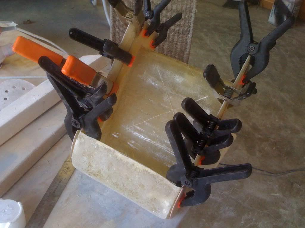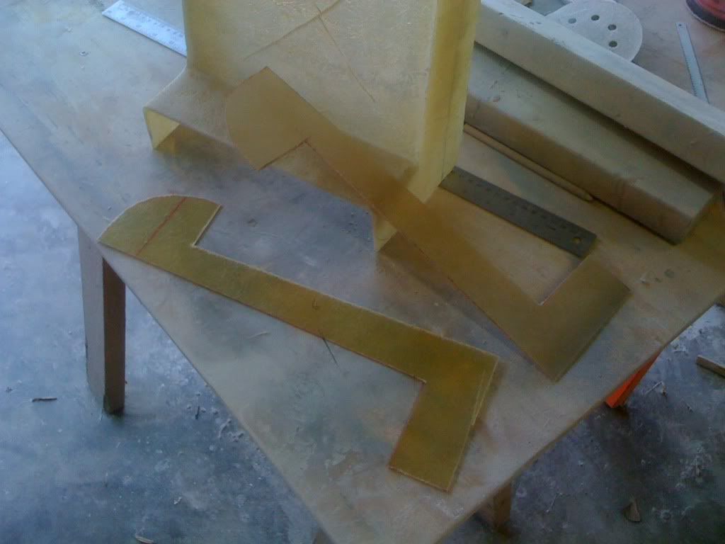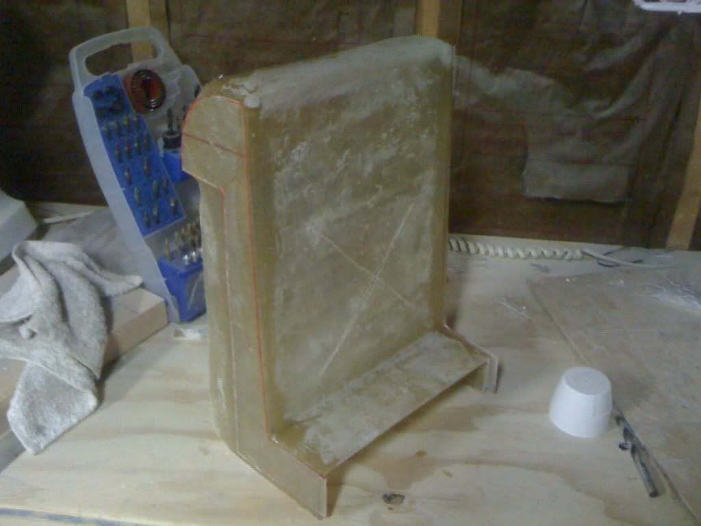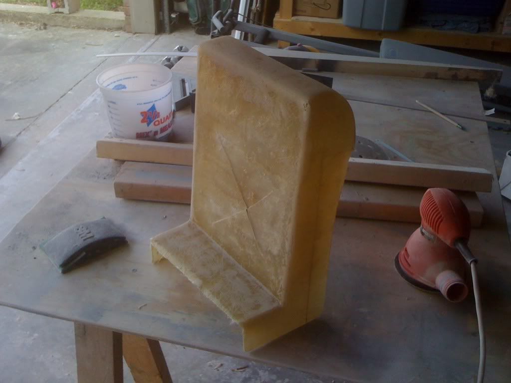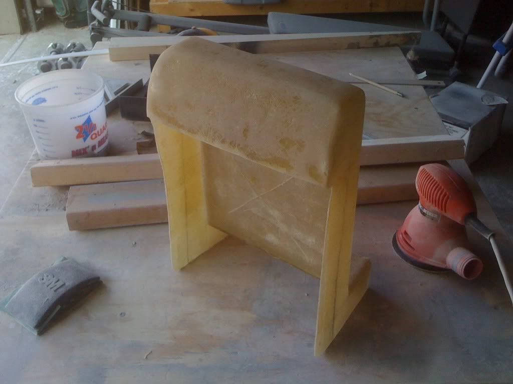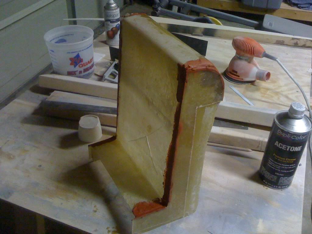 Once you have a good idea and understanding of your design then create your fiberglass panels. I would go 2-4 layers thick for the sides. And then use a hefty pair of tin snips to cut the fiberglass to your desired shape. And of course prepare for sanding... lots and lots of sanding. For the curve section I would create a panel with only two layers (use matte - NOT cloth). You want enough flexibility in the fiberglass to make the piece fit the curve but light enough to hold in place with either hot glue or tape. Once everything is in place use either resin and ONE layer of glass or body filler around the edges / side where the three pieces meet and let dry so you can then remove the tape / hot glue. You can then add additional layers of glass to the curve section if need be.