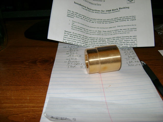I'll be ordering my rack bushing from Rodney Dickman Tuesday.