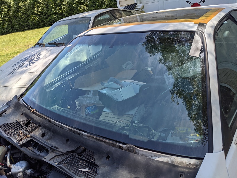A few people said I should hold off on the windshield until I had the body work done, the problem is the glass that was in there was looking AWFUL. I mean, look at this!