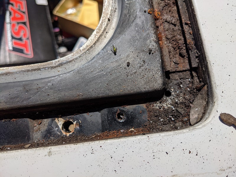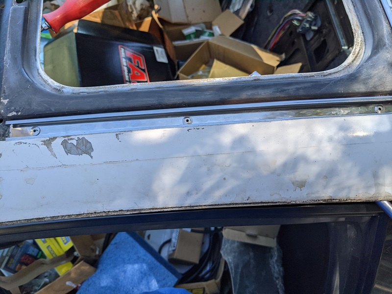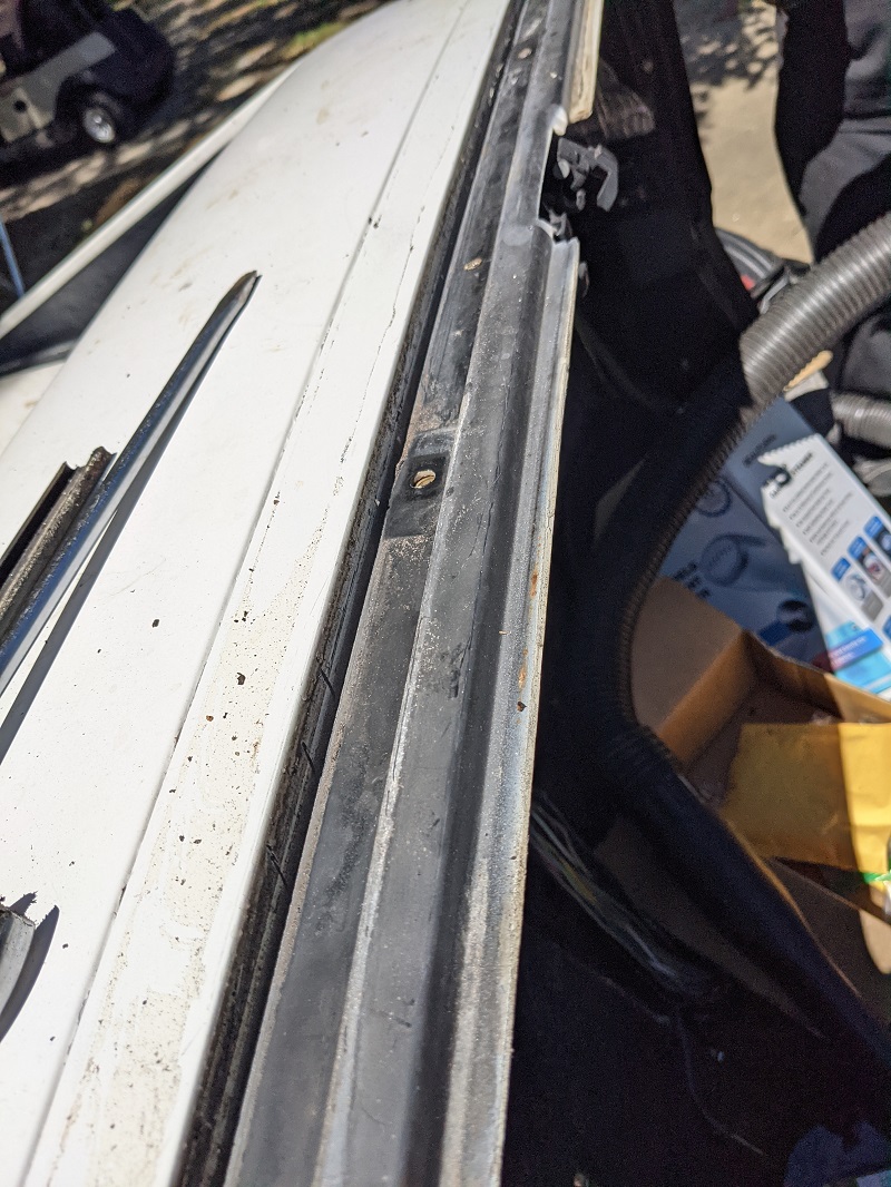 This let us fish the base of the rivets out, and get the clips that hold the sunroof tabs out, so they could be cleaned up.