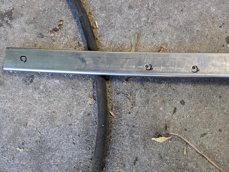 The front rail was the most challenging. Mike asked me if I had started marking anything, I said no. There were sharpie marks on the bottom of the rail that were very close to where his drill marks were on the top of the rail. He noticed them when he flipped it over after drilling a few of the holes.