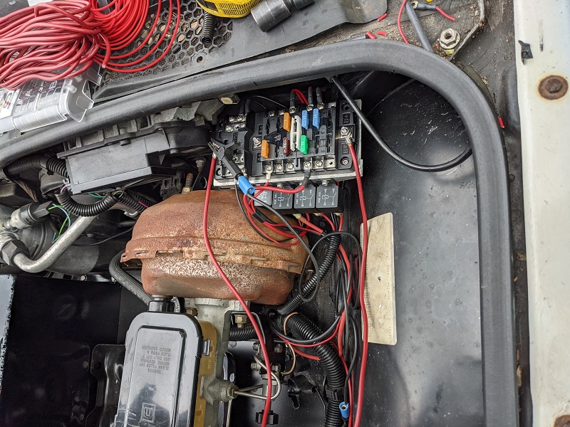 We tested the radiator fans and power steering pump, all worked. We were both very happy with the assist in steering from the EHPS. Once a little more wiring is done (one of us had to stand there jumping a connection for the power to get to the fusebox), I'll get a video of it working.