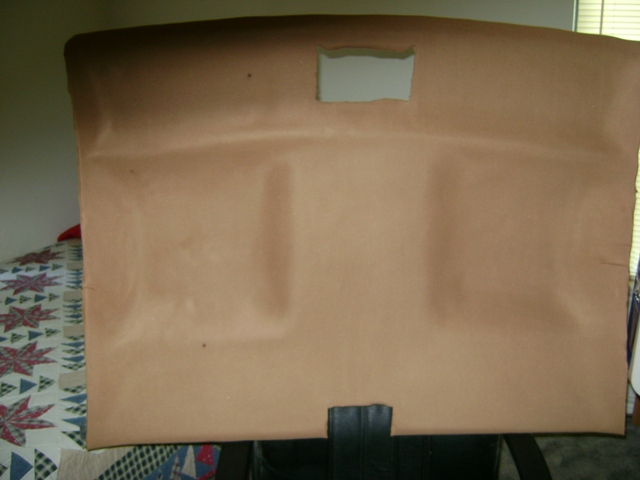 I thought I would try to get something done on the back porch before it got up to 98*. I covered the head liner with some beachwood fabric. The can says to wait about 2 minuets before putting the pieces together. WRONG. when it's 95* ya gotta hustle. The adhesive looses its 'sticky' faster than when its only 80* or so. I have put these on before, and did one half at a time. About a quarter at a time is what I recommend on real hot days like today.