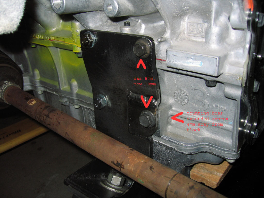A small price to pay for a newer block. GM increased the bolt size from 8mm to 10mm and increased the lower right mounting boss by extending it out from the block an extra 4mm or so. A little cutting and welding and all is ok with the world again.