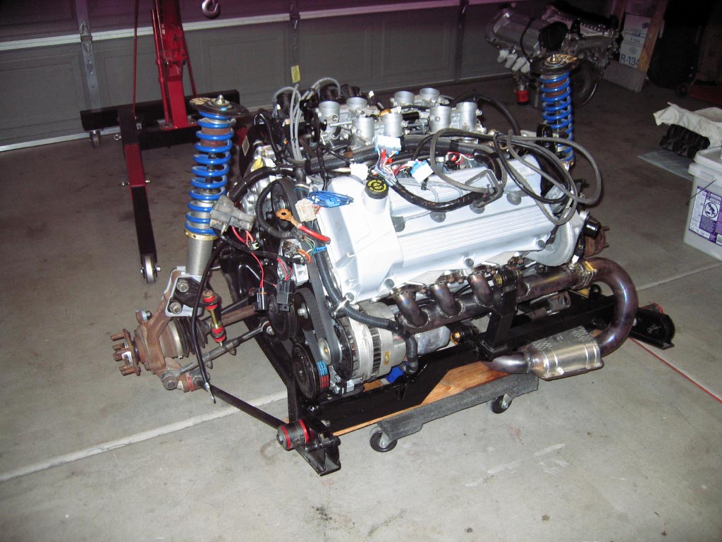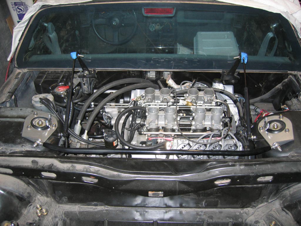 Couple more pics, then off to bed. Engine is back in the car, just need to add coolant and hookup the + side of the battery.