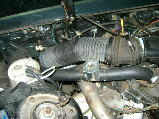 My car, as most all do , has the V6 air filter mounting standoffs on the driver side metal wheel wells . I just went out to install the V6 air can mounting bracket. A PO has butchered up the fuel filler pipe and it's hoses. The hose and pipes are radiator hose and exhaust pipes. This com blob er ation is smack dab in the air filter mountings way. I have contacted a friend to see about getting a factory 88 style setup he has on a parts car. I will make a temporary mount so I can go ahead and get the air breather mounted and working today.