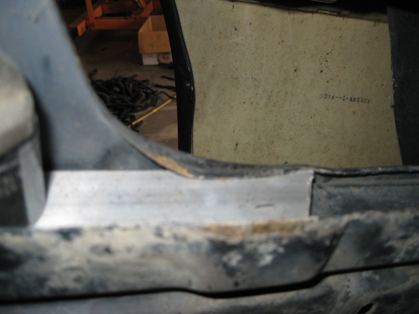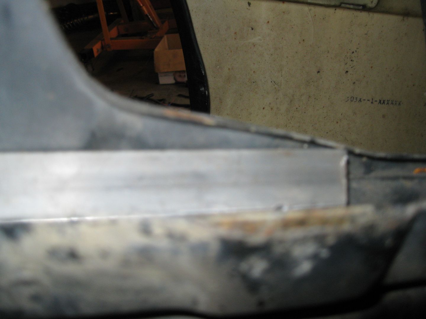 I am going to bend the sheet metal over to re-contour the hole. In the first pic you can see the piece of aluminum I clamped to the frame rail. It was 1/4" thick and very close to elevation of the stock flange at the front of the hole. You can see how much the sheet metal rises as it goes to the rear. With the aluminum there, I can hammer the sheet metal over onto the aluminum to make a new flange.