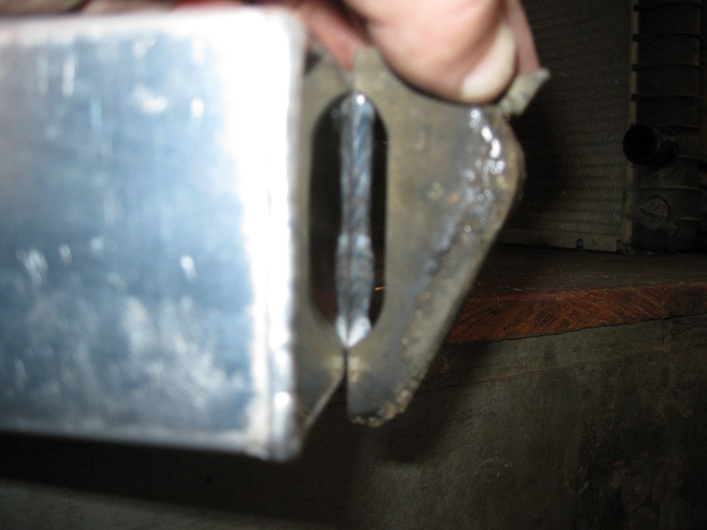 While test fitting the radiator in the modified lower mounts, I found a bolt the protruded enough to make contact with the side cap (the one near the center of the pic):