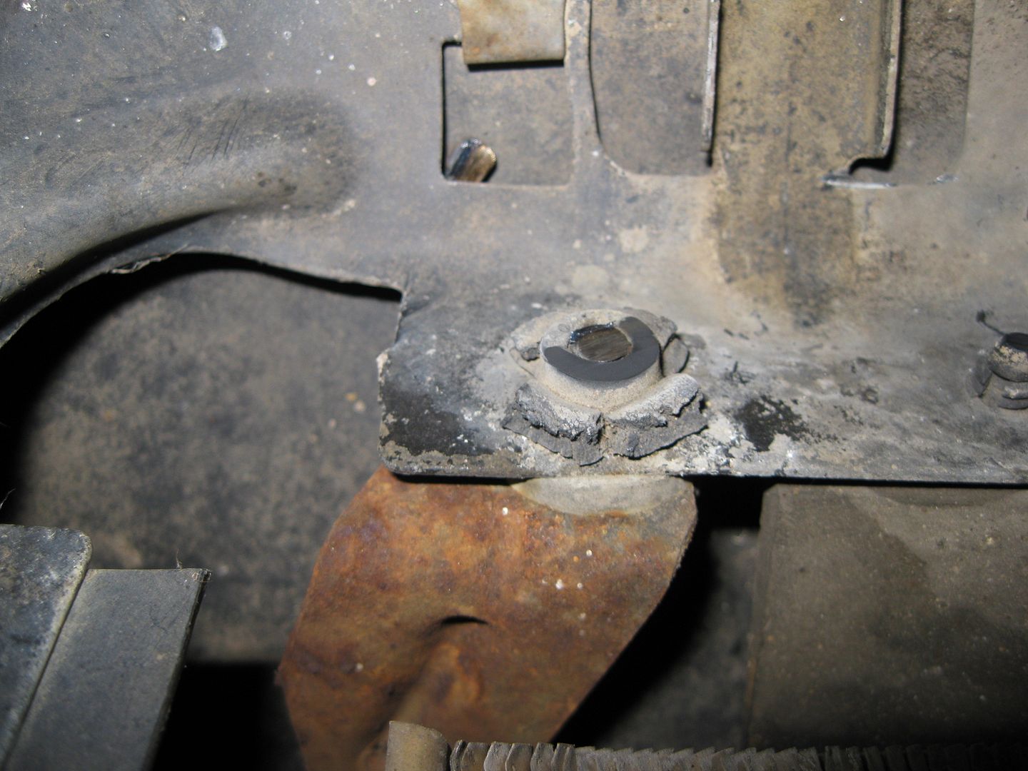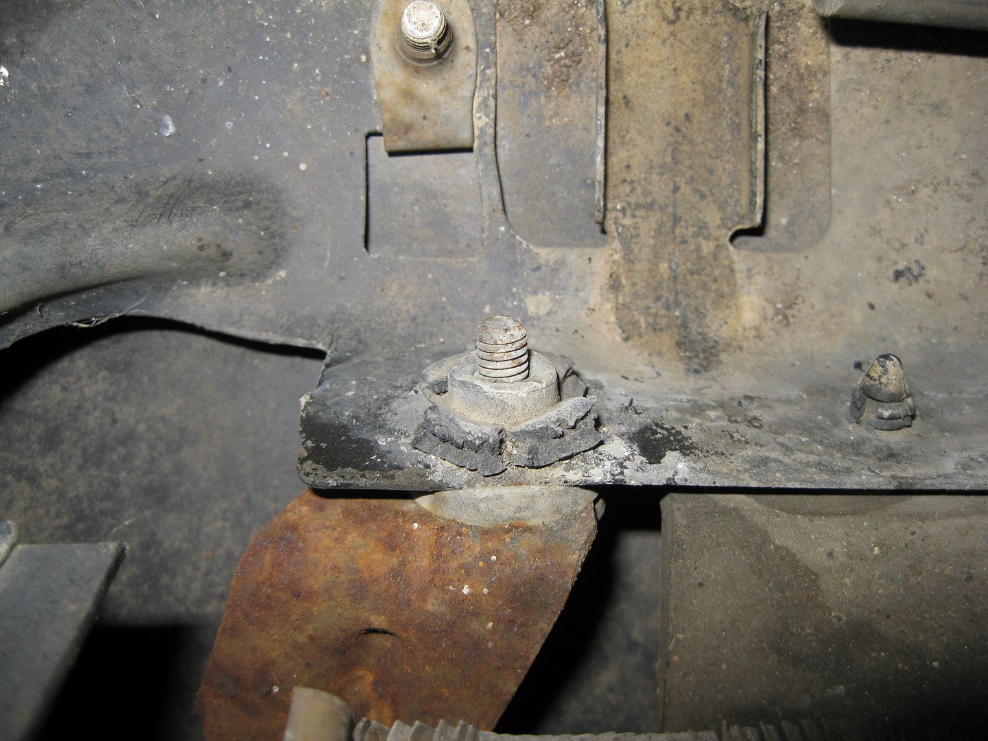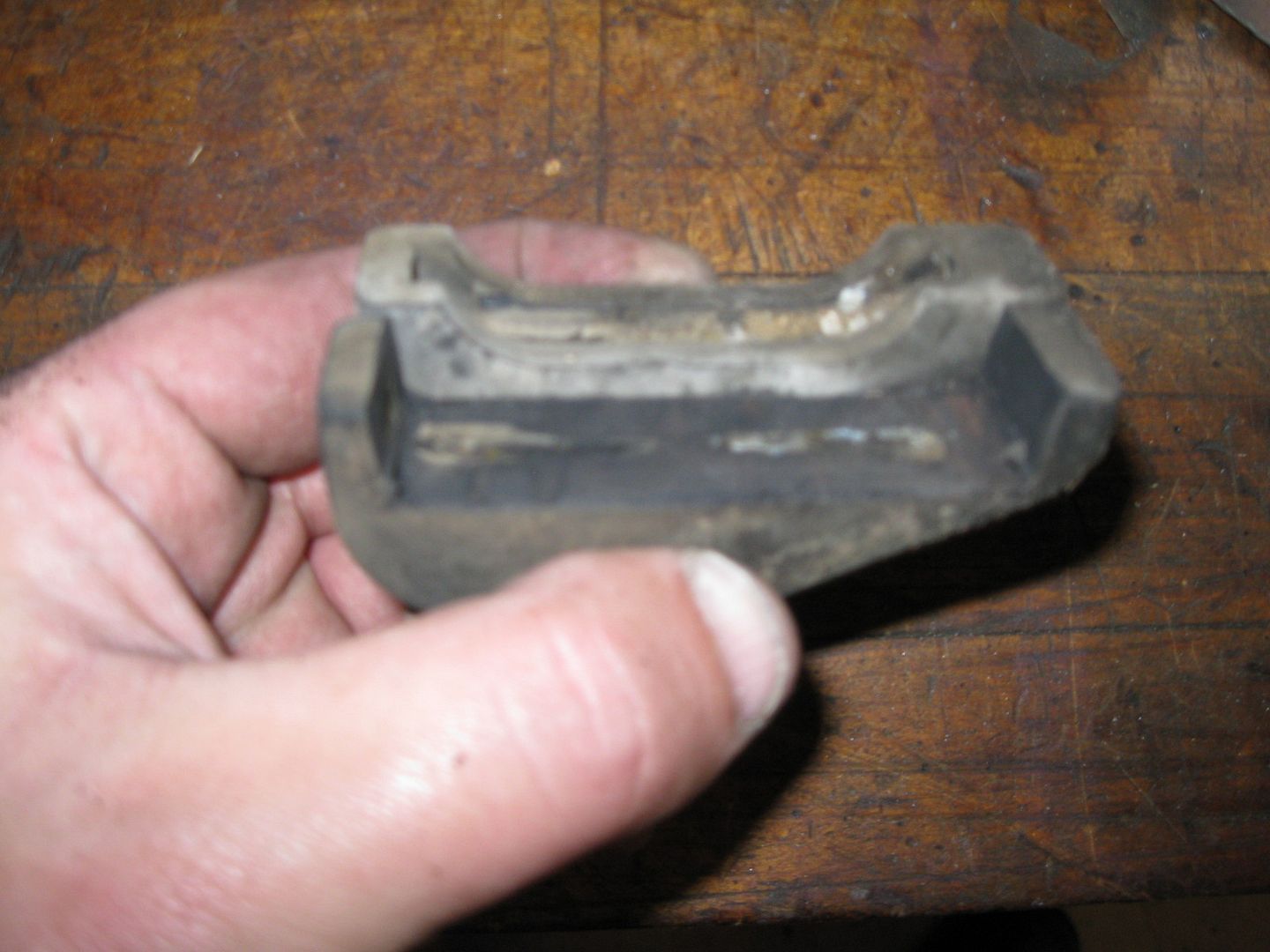Starting the work on the rubber mounts. Here the stock lower rubber mount showing that the cut out is too small: