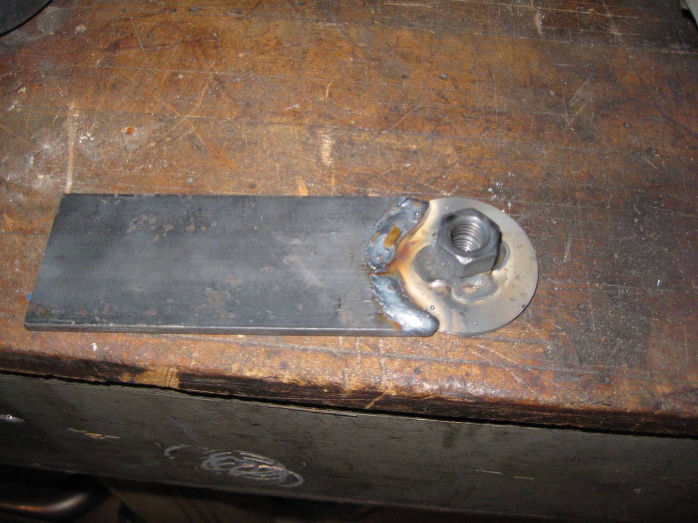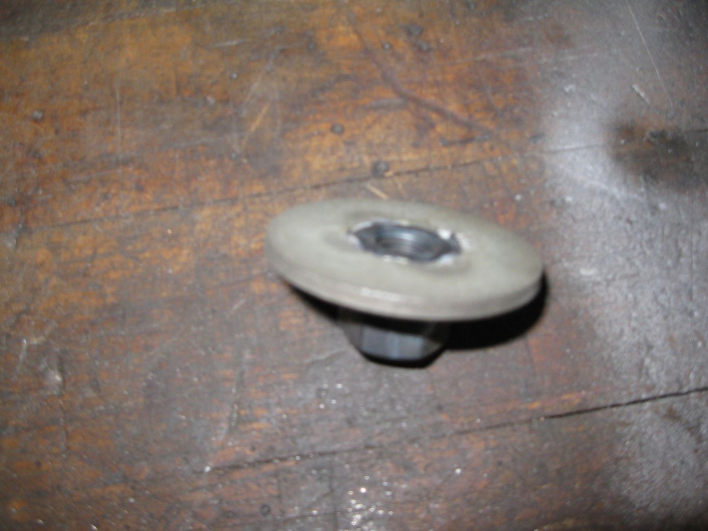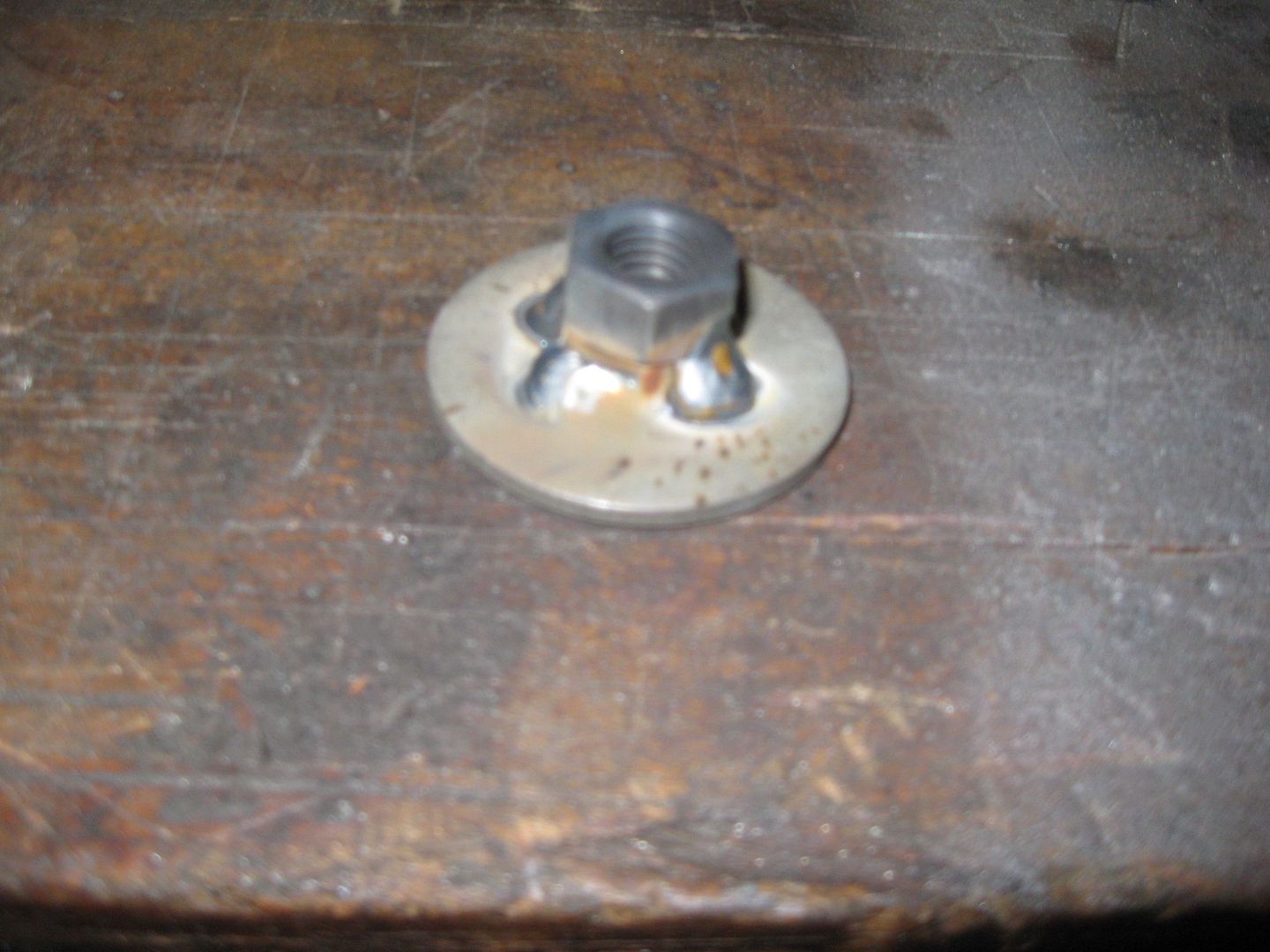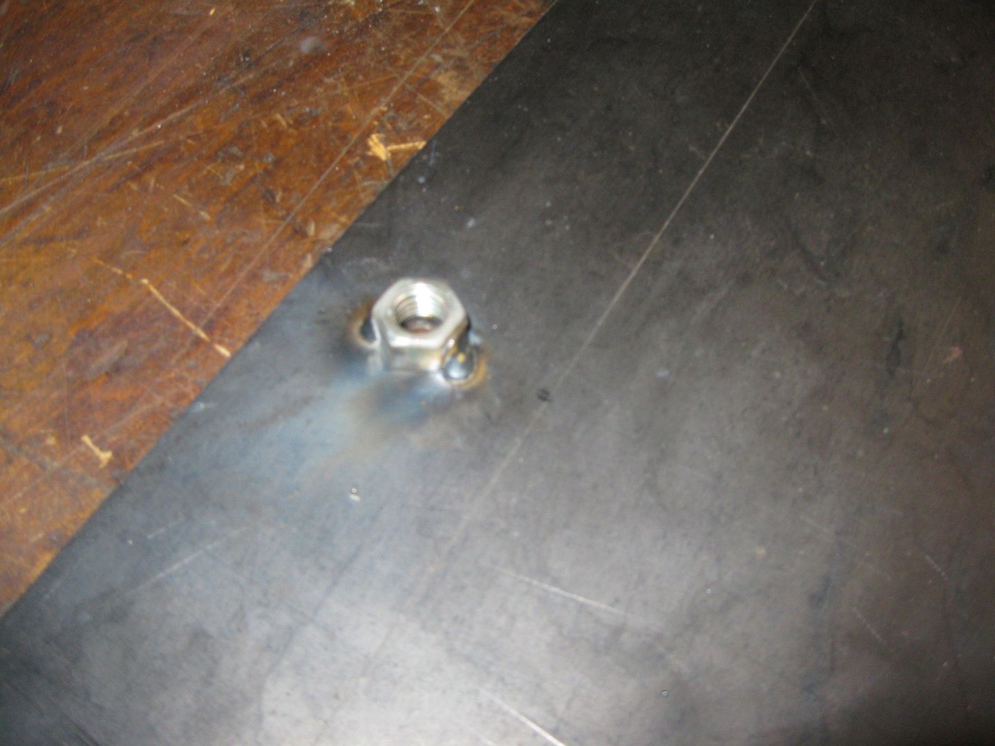 Then I started playing with the smooth firewall panel. I tacked some 3/8" nuts to the backside to space it from the stock firewall, then drilled the 1/4" mounting holes for the bolts and cut the hole for the harness connector:
