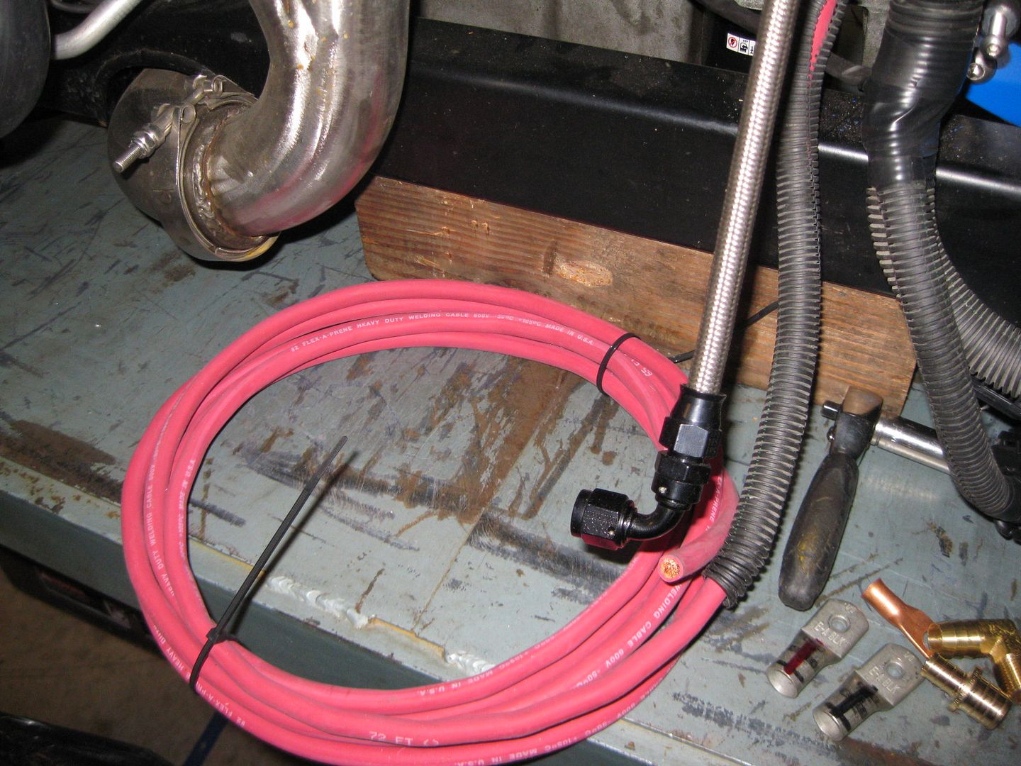I soldered on the battery cable end at the starter, routed the power cable around the starter and then coiled up the excess. I will run the cables on the final install.