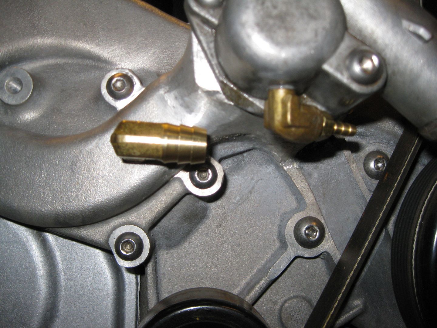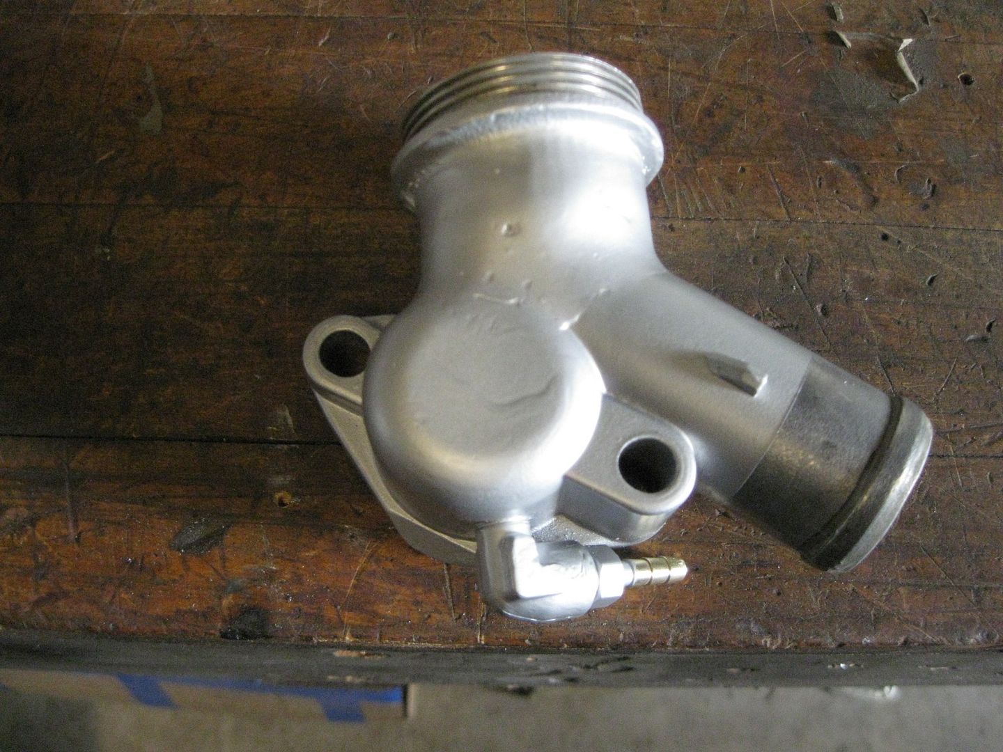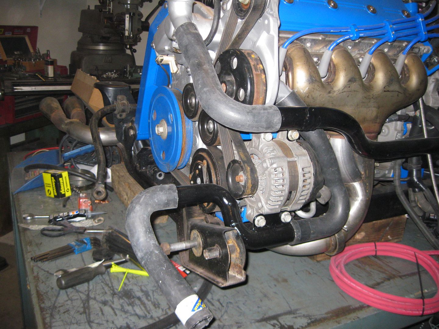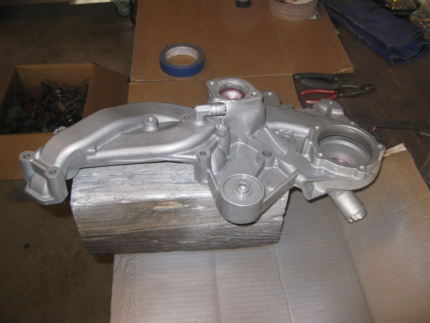 Then I removed the water pump and thermostat housing and painted them aluminum so they would have a more uniform look: