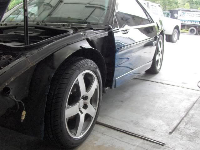 This is how the car looked when we showed up to pick it up. I managed to sneak a pic with the new rims on it. I snuck this pic in this thread 'cause Joey is too depressed to even look at this thread right now. So, anyone recognize what factory car the rims are from? (and no guesses from Alltrbo, he gave us the idea for them) Dave