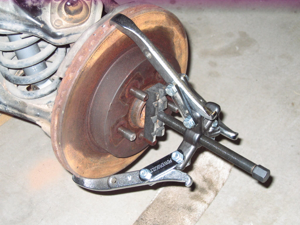 Picture of a stubborn right front rotor. This was after approximately 22 hours of working on trying to pull it off the hub. Amazing what 21 years and some light rust can do.