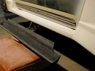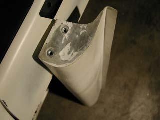 As I mentioned last weekend, I had quite a time getting the drivers side lower Gfx to fit to my satisfaction. Unfortunately I didn't take a decent photo of the problem area, but what it was, was that the ends of the lower Gfx piece didn't mate up with the corresponding areas of the front or rear fenders very well. Now this was in no way the fault of the way Sage made the parts, as he just pulls parts from the molds he has to work with. My guess is that IRM knew that these areas would need some grinding anyway, due to variations in each car, so they weren't too concerned with fit and finish on those points. Each car is a little different, and the length needs to be adjusted to get correct door/fender gaps. Unfortunately nobody told Sage or myself about this, so by the time the ends were ground down enough to get the door gaps reasonable, and the parts themselves mating up properly, it was necessary to grind almost clear through the ends in several places, which left them too weak to support the mounting hardware. I added 4 layers of glass mat to the inside of each end of mine, and I think Sage will be building future parts thicker in this area now that we know what to expect. After being built up inside, riv-nuts can be installed in each end to secure them to the fenders. Pop rivets will also be used in the flange under the car, and in the top, similar to the stock Fiero parts. Sage offered to build me new Gfx pieces at no cost to me, but I figure that these things are just part of the "guinea pig clause" in my contract for this project . That's the main reason I got the good guy deal from Doug on this kit. this is the first IMSA out of these molds in many years, so we all expected there would be some problems to solve along the way.