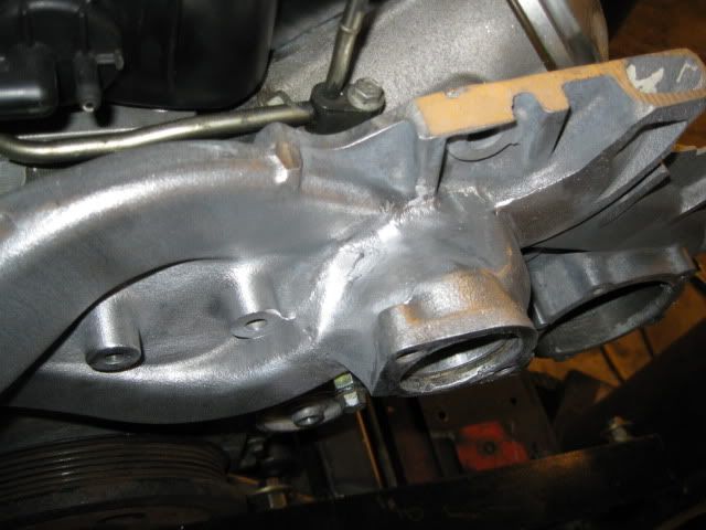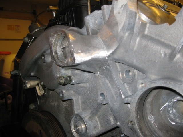 The nipple for the water pump inlet was welded in place and the welds cleaned up: