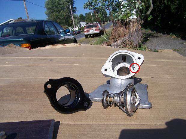 This is the disassembled t-stat housing. The red circle highlights a feature of the housing that requires preferential orientation of the T-stat itself