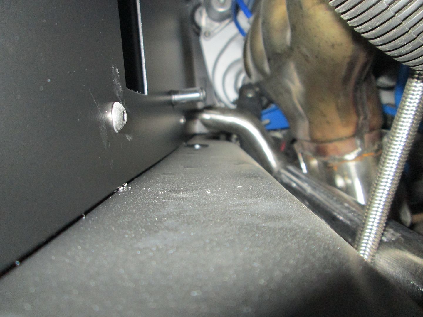 Here are a couple installed pictures. There is now about 3/16" between the tube and the PS front cradle mount tab: