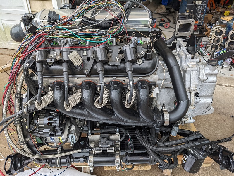 I think there is still a few wires left that we need to do. Besides what he had already done, we finished all the coil pack wires, injector wires, IAC, TPS, MAP. We left off with a sensor that he had to look up info on the sensor itself, because the FAST system had two different wiring configurations, depending on how the sensor functioned (I think he said that sensor could either be a 5v reference or a PWM?)