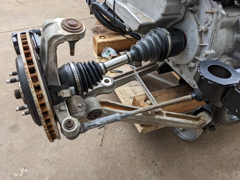 Tomorrow the half shafts for the axles should be showing up. If Mike doesn't have the time/interest in putting the axles together during the week (I wouldn't blame him), then we'll do that this weekend, along with mounting the engine back on the cradle, start prepping the engine bay, and possible replacing the last few suspension components in the back.