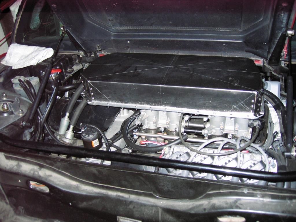 68 3mm screws later, the intake plenum is roughed in. Just need to try it out on the road as I think it will be hitting the decklid from lack of clearance. If it somehow works out, then I will see about painting it.