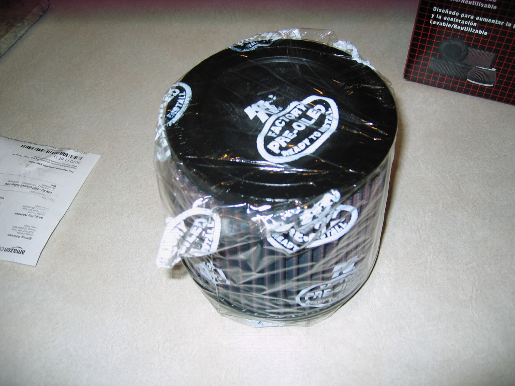 K&N racing "cone" filter. 4-7/8" outside diameter at the large end and 2" diameter at the small end. Flows just over 1000 CFM