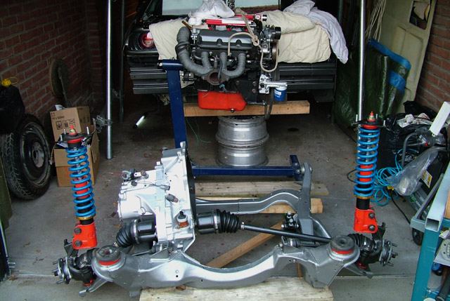 still needs a clutch etc but untill I have all these parts I can put it in and already fabricate the dogbones, coolant lines and wiring routing and lengths...