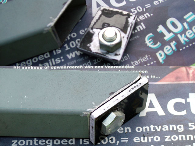 Working on some enginebay parts... Got it figured out how to mount the dogbones/strutbar, I will bolt it directly to the driver side strut tower, setup done by welding a nut to the back of the 'endcap' and then welding the cap to the bar