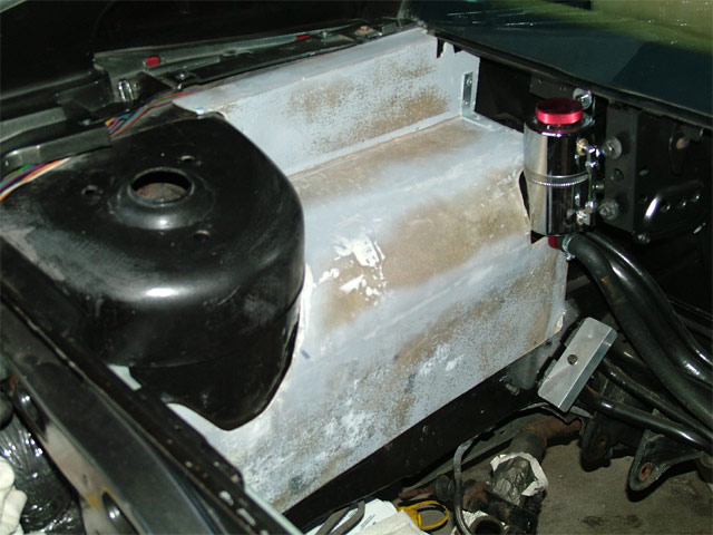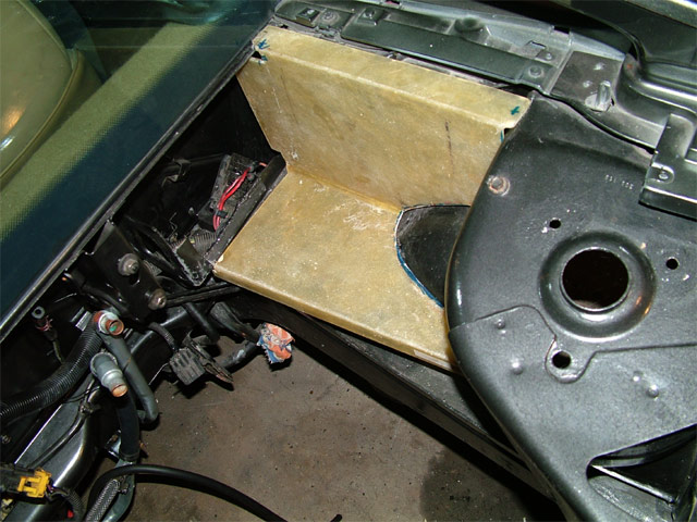 Made a side pod for the engine fusebox and the 'sparkplugwirerouter'.. Decided to keep it easy, doing it 'yankee style'