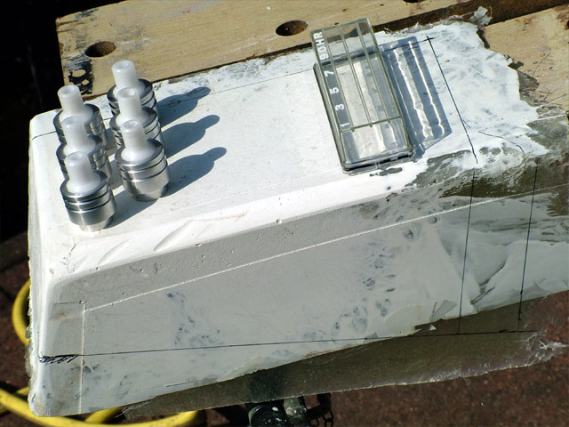 Rough product, enough fiberglass to sand smooth. Setting up the layout for the cuts: