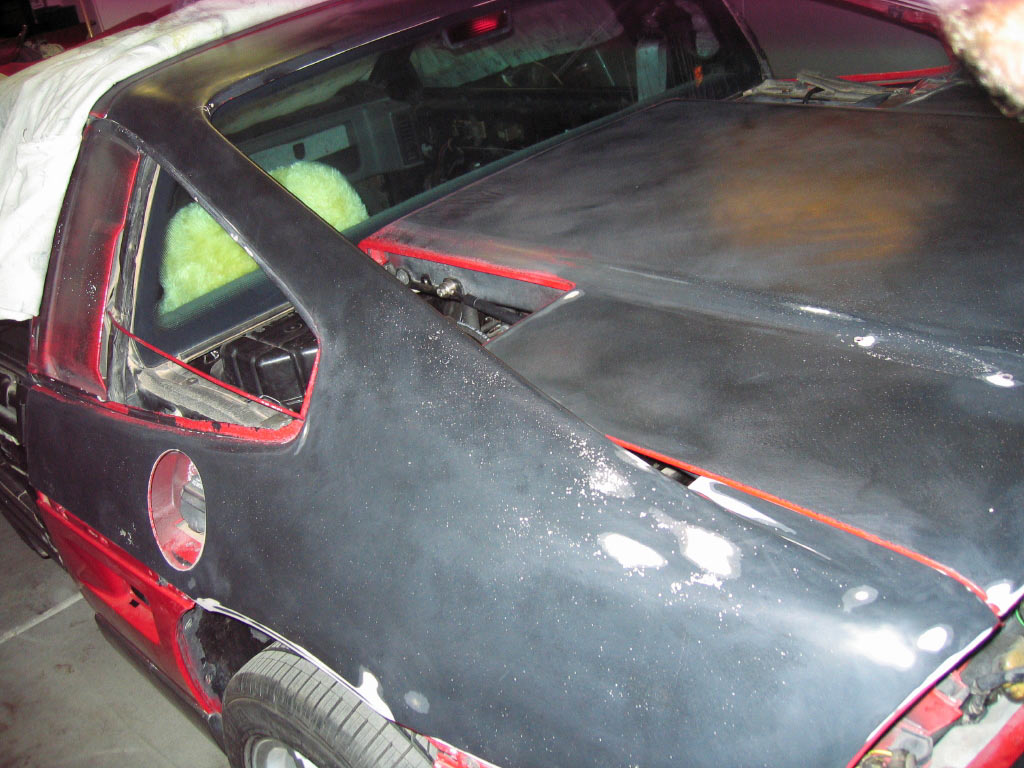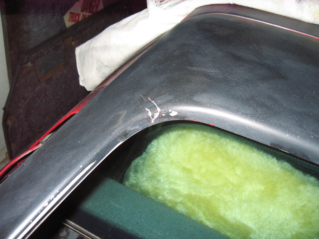 First two pics are of the general area worked on. The speckled stuff is where the media blast dug deeper in than the black primer. I am hoping a primer or filler will take care of those. The third pic is of a couple of cracks in the corner of the upper rear body. I was given some Evercoat SMC Panel Adhesive 3 #994 to fix it and other cracks on the top body pieces with. Hopefully that will take care of those.