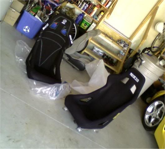 These are the most inexpensive Sparco seats you can buy, but they fit my needs nicely. They're very light, and narrow enough to fit in the fiero. They were about 320CDN each. You can probably get them for 215US each. If you go to a more expensive sparco seat, they will most likely fit a wider waist, however, I don't know if they will work with the stock rails. You might have to invest a little more money in custom rails.