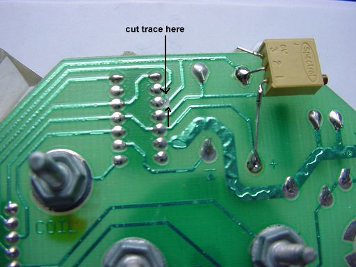 I removed a 85 4 cy tach spare I had, and cut the trace. Using the 200K range I got a measurement of 12.9 Measuring where he soldered the Pot in this picture I lifted from him