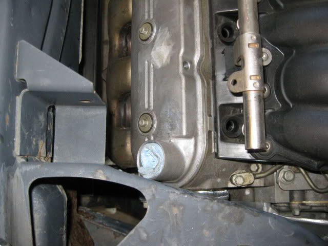 Oil fill is still trying to co-exist with the dogbone bracket. My fiero will not have this dogbone bracket to contend with.