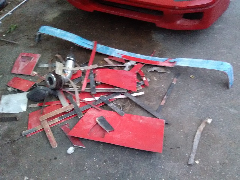 Did a lil cleaning around the workspace, cant believe how much I cut offa this car. This is most of the fiberglass, some I reused as filler