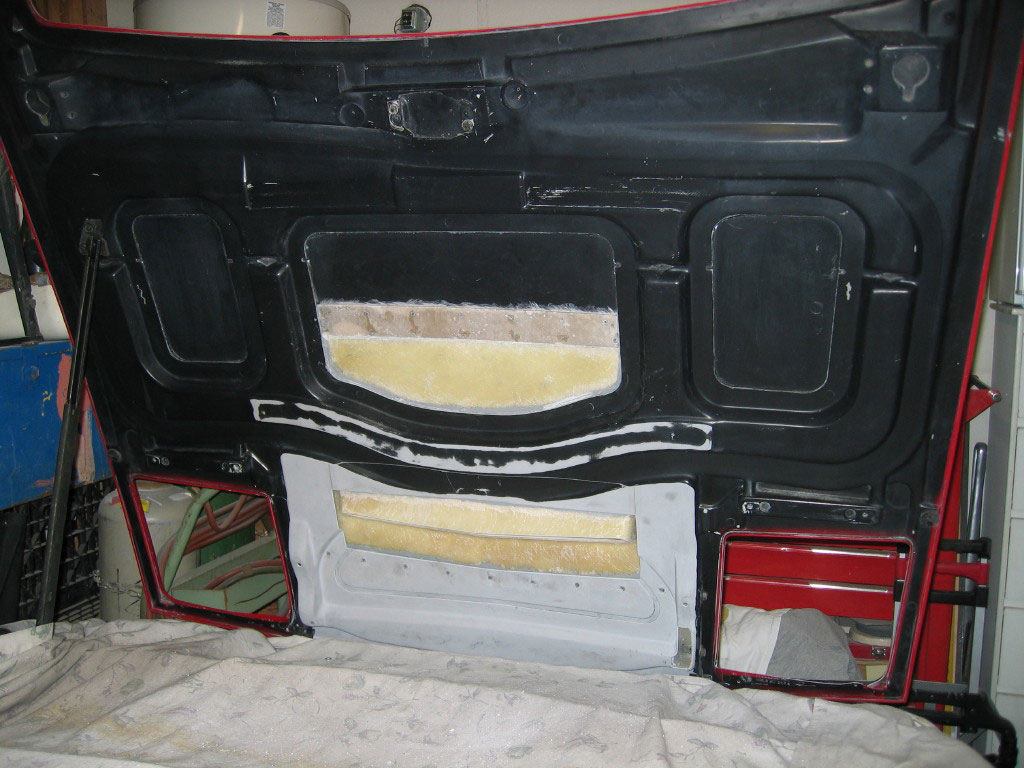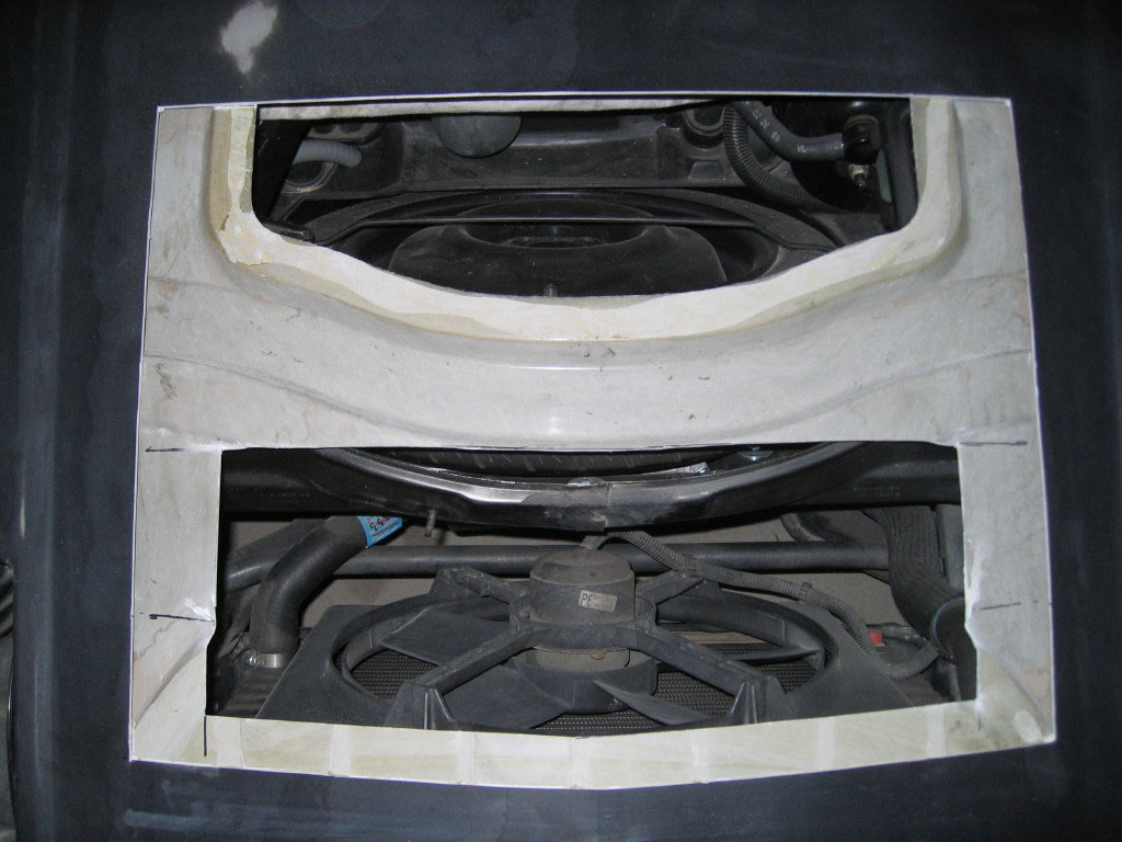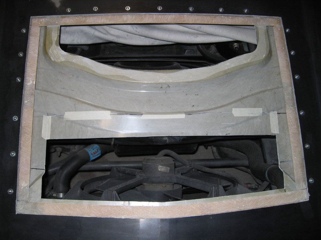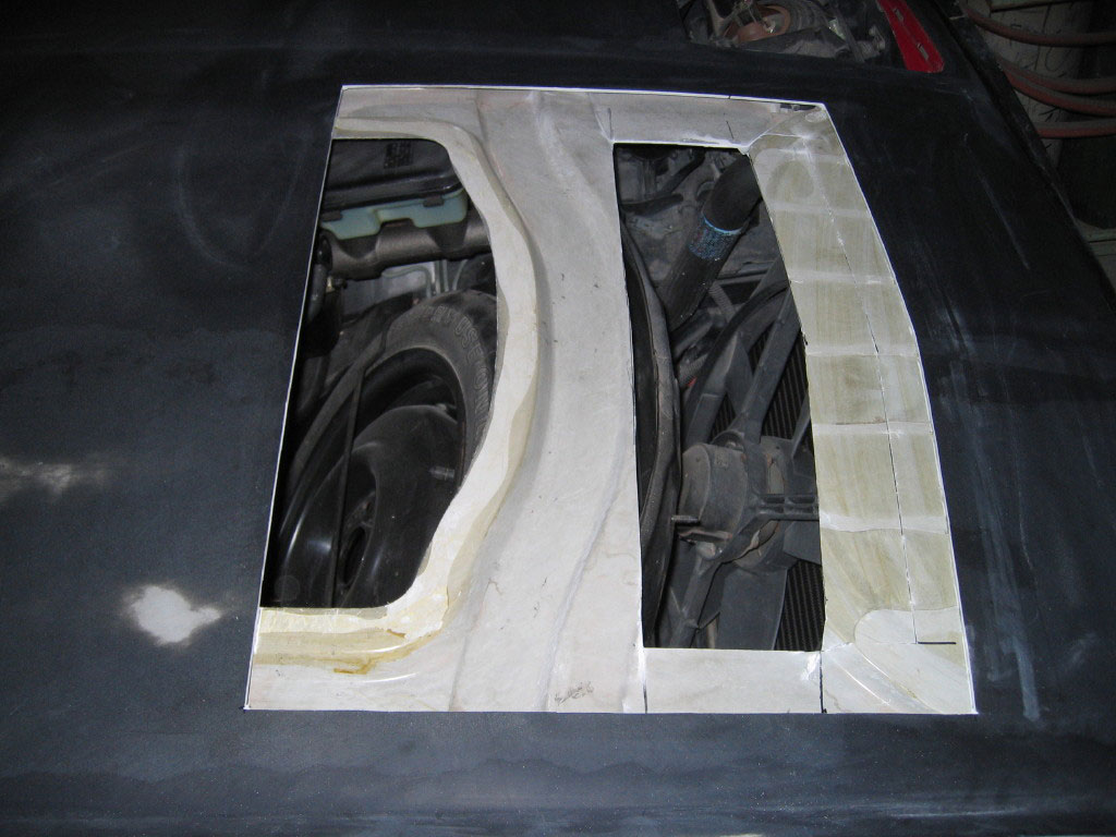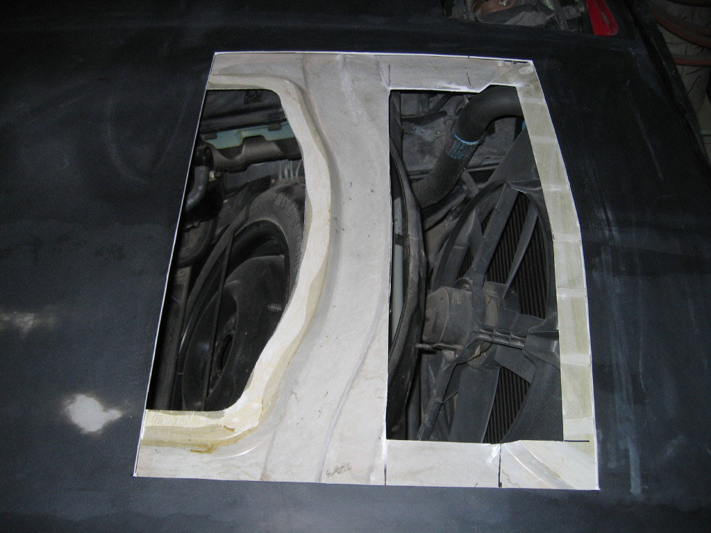 Taped in place is the piece that I should not have cut out. The vent fits fine over this and allows the bottom skin of the hood to contact the weather seal as it normally would. I will be bonding this piece back on..