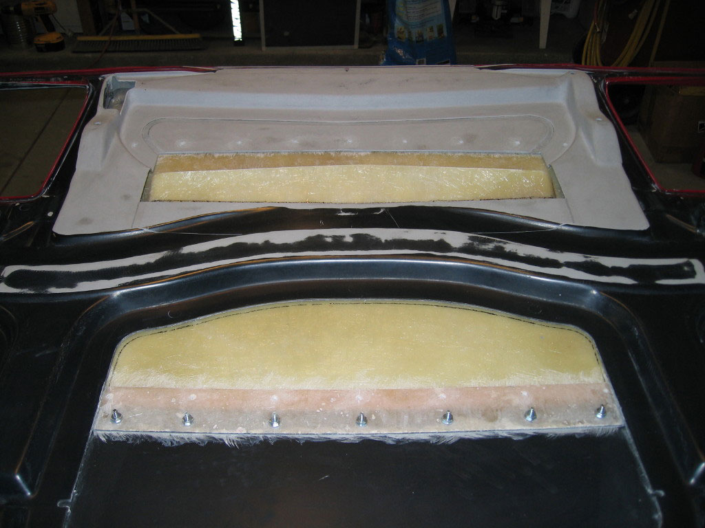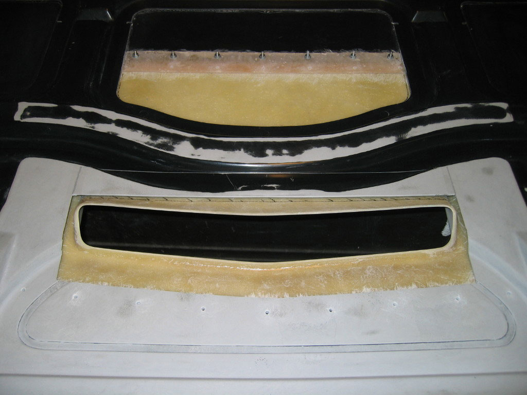 OK, I get that they will do a great job in securing the scoop as the adhesive drys. I had assumed that when you place the scoop in the hole, it fits flush and all you need to do is put some weight on top of it so that is does not move. I noticed from this pic it looks like a fiberglass strip was added all around the lower panel. I get why you need the stip on the back portion, because when the upper portion is removed, there is no lower there to attach the scoop and it could flex in that area causing a lot of extra glass work, but what is the rest of the fiberglass all around the lower panel? Or is it just that im looking at it wrong. Again, thanks for all the anwers to this, I want to make sure I ask all the questions before I buy the scoop.