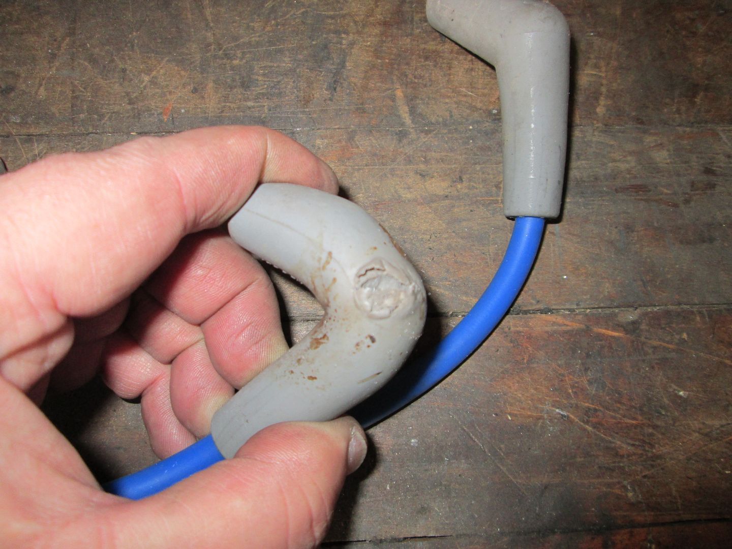 So I used purchased another set of plug wires and cut a new replacement (and put 7 more spares on the shelf in case I do it again!).