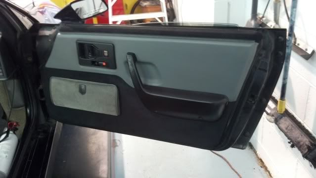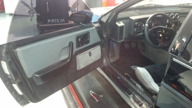 Flocking is done with brush on glue and flock. We have an attachment to use with shop air to make it easier to apply. My head tech, Ryan (also a Fiero owner) did the flocking on both of my cars and his as well. It is very durable and is common to see on race cars. I just like the way it looks. I won't be doing the map pockets in suede. I experimented with a few different looks including deleting the map pocket and I like the cloth gray the best because it gives the right accent and matches the carpet and door vinyl.