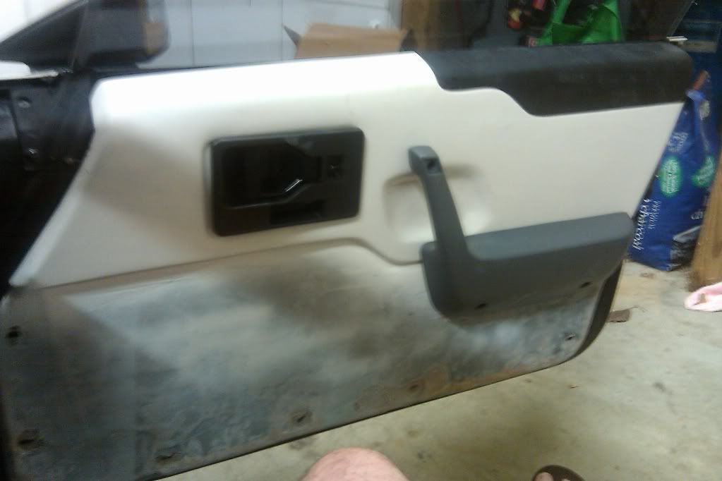 The door pull will not remain grey. The plan is cover the door pull in the same material that will cover both the lower portion and the upper black piece of the door panel. I'm going to with a tight stitched look. Not really sure how it will turn out... If all else fails, I'll paint them black.
