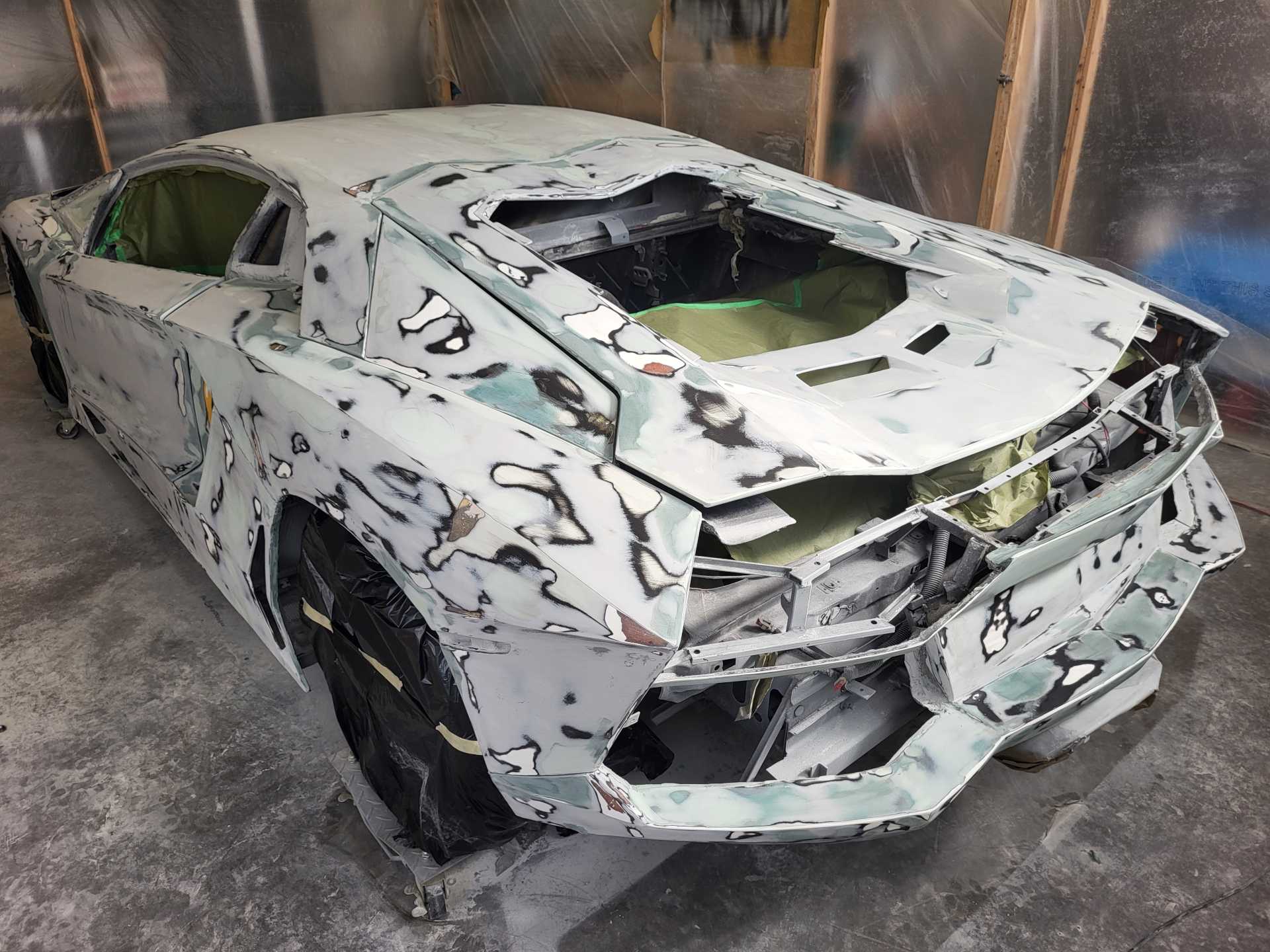 Finally put a little bit of 2k urethane primer on the car. It's a nice surface for doing the last bits of bodywork... I'll be guide coating this and then sanding down to 600 grit sandpaper in preparation for painting.