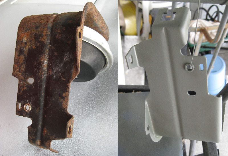 The cruise control vacuum thingy for the cruise control was next on the list. The bracket was pretty rusted up, and it's something I forgot to do when the engine was out and the inside of the compartment was painted. The bracket was really rusted, but with some cleaning, grinding and primering, it looks like it will come out good.