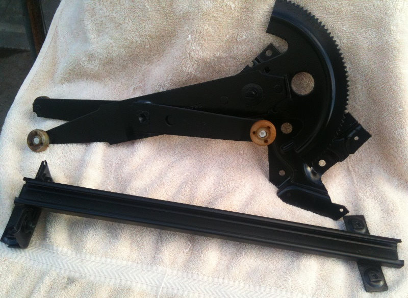 I have the drivers door regulator all ground, sanded, primer, painted and greased up, and all ready to go back in: