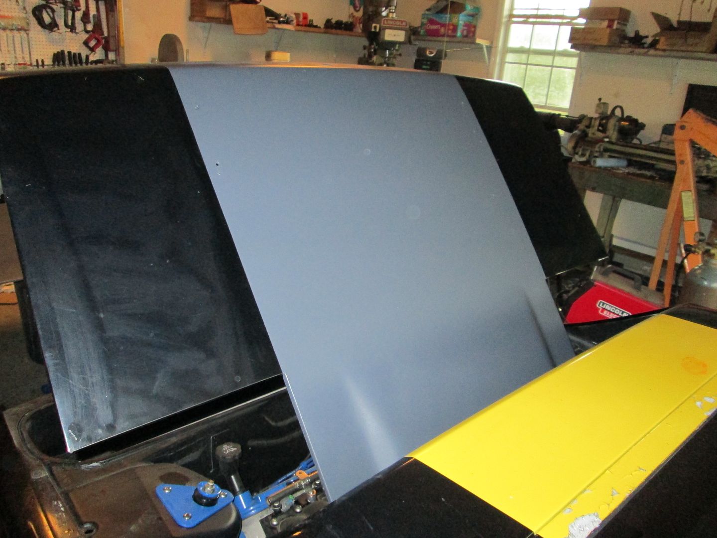 The grey is better than the yellow (color-wise), but the coverage isn't very consistent. I might just peel it back off, scuff the yellow and just repaint the striped portion with my paint gun.
