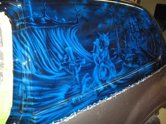 Because I don't have nothing cool to post right now, heres some pics of stuff goin on at school, LTI One side done on a PT, had a head on collision and quarter panel smashed.