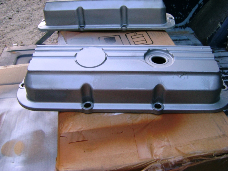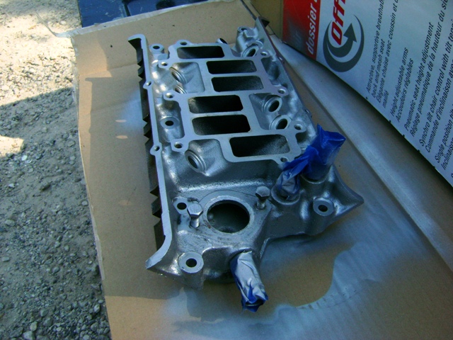 I painted the lower intake, and the fasteners for it this morning. Same for the distributor hold down. All will get a coat of engine paint, clear before they are put out in the hot Texas sun to bake at 100*. Cleaned the last of my dirty parts from the old 2.8. Lower intake: