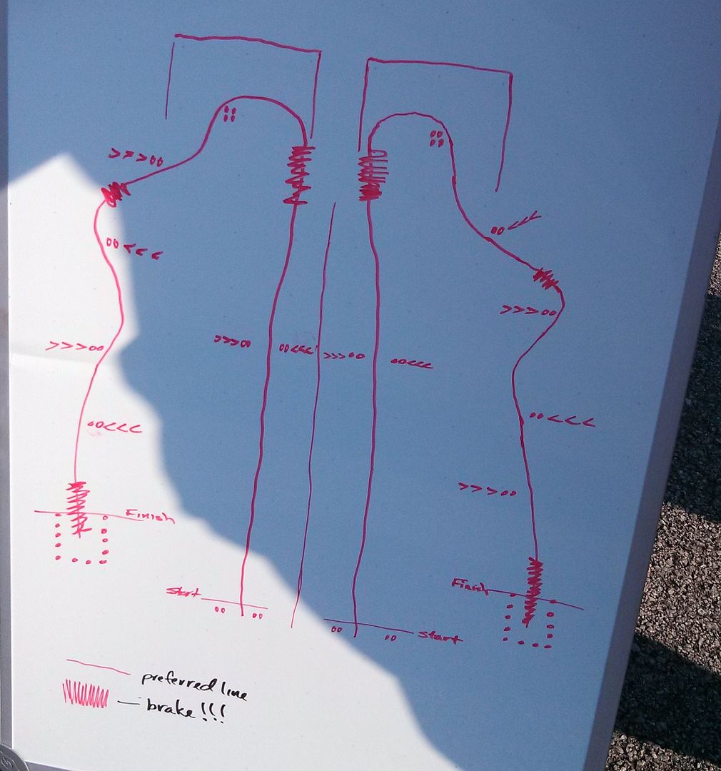 The 3S competition was a handful... Here is a picture of the course (2 cars run side by side, then turn opposite directions. Then switch sides and the average time for both decides the winner - bracket elimination):