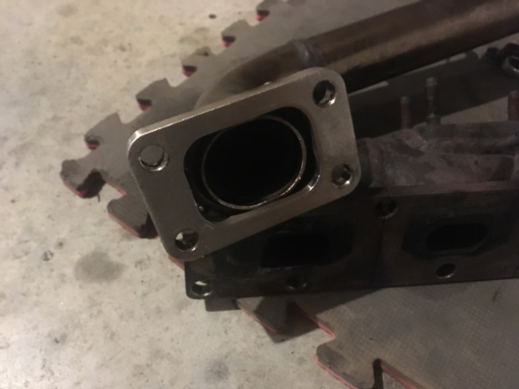 Started working on mounting the 16G turbo this week and ran in to a few snags- Even though the turbo is physically smaller than the 20G, because of the shape of the turbine inlet and where the air feed and pressure outlet faces, it is impossible to hang it off the Hahn manifold the way the 20G is. So I laid out 120.00 cdn for some gaskets and flanges. Was hoping to not have to spend any money but best laid plans etc. Would have been a little cheaper but they only had stainless flanges in stock.