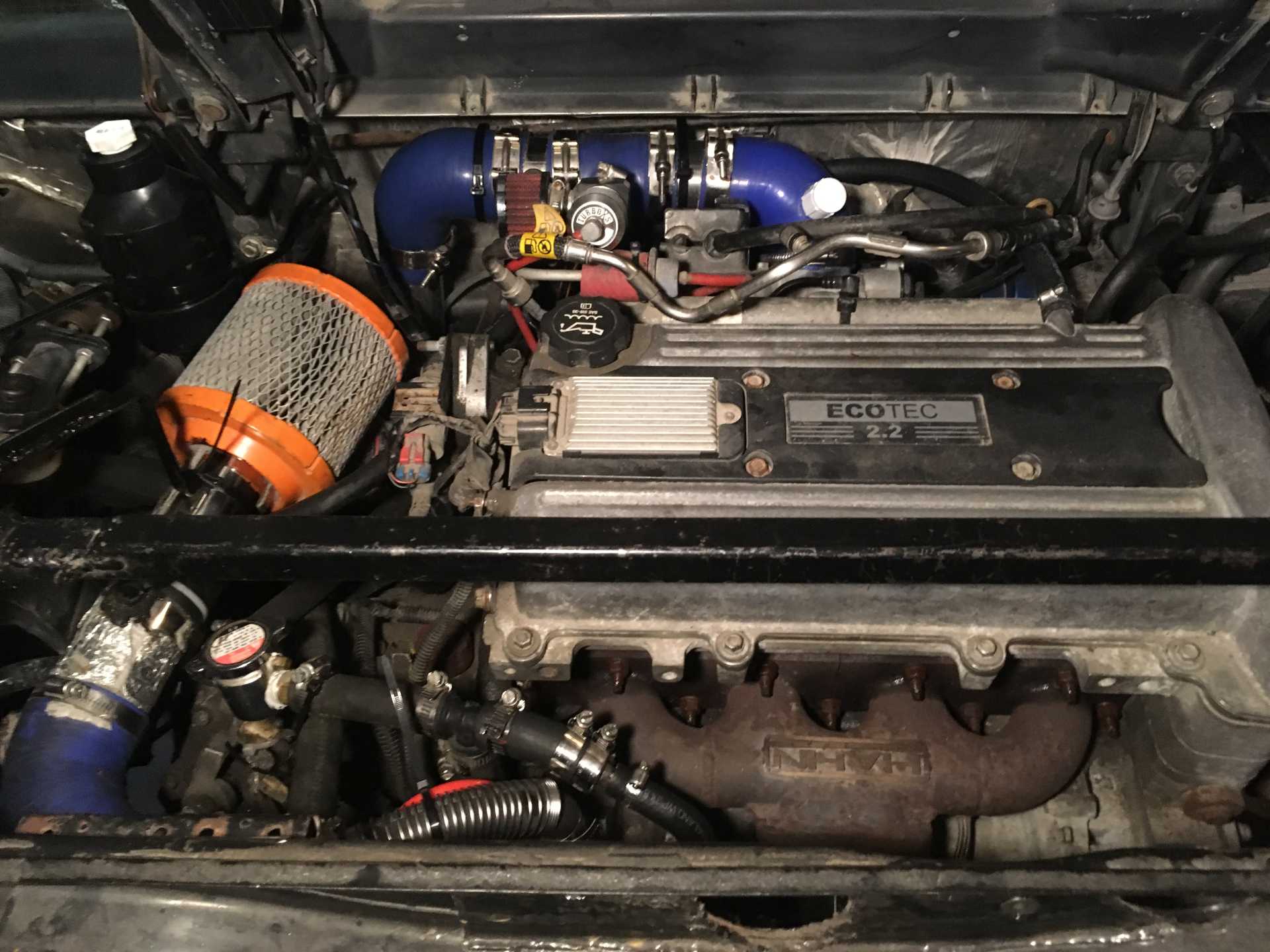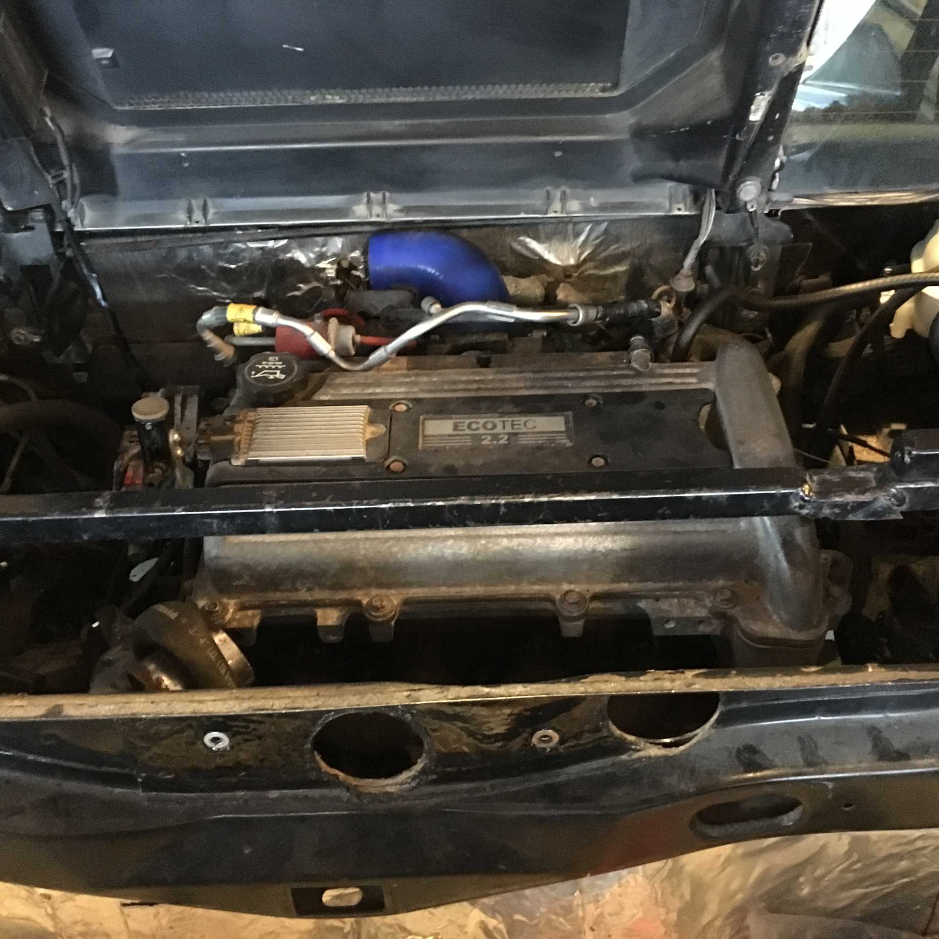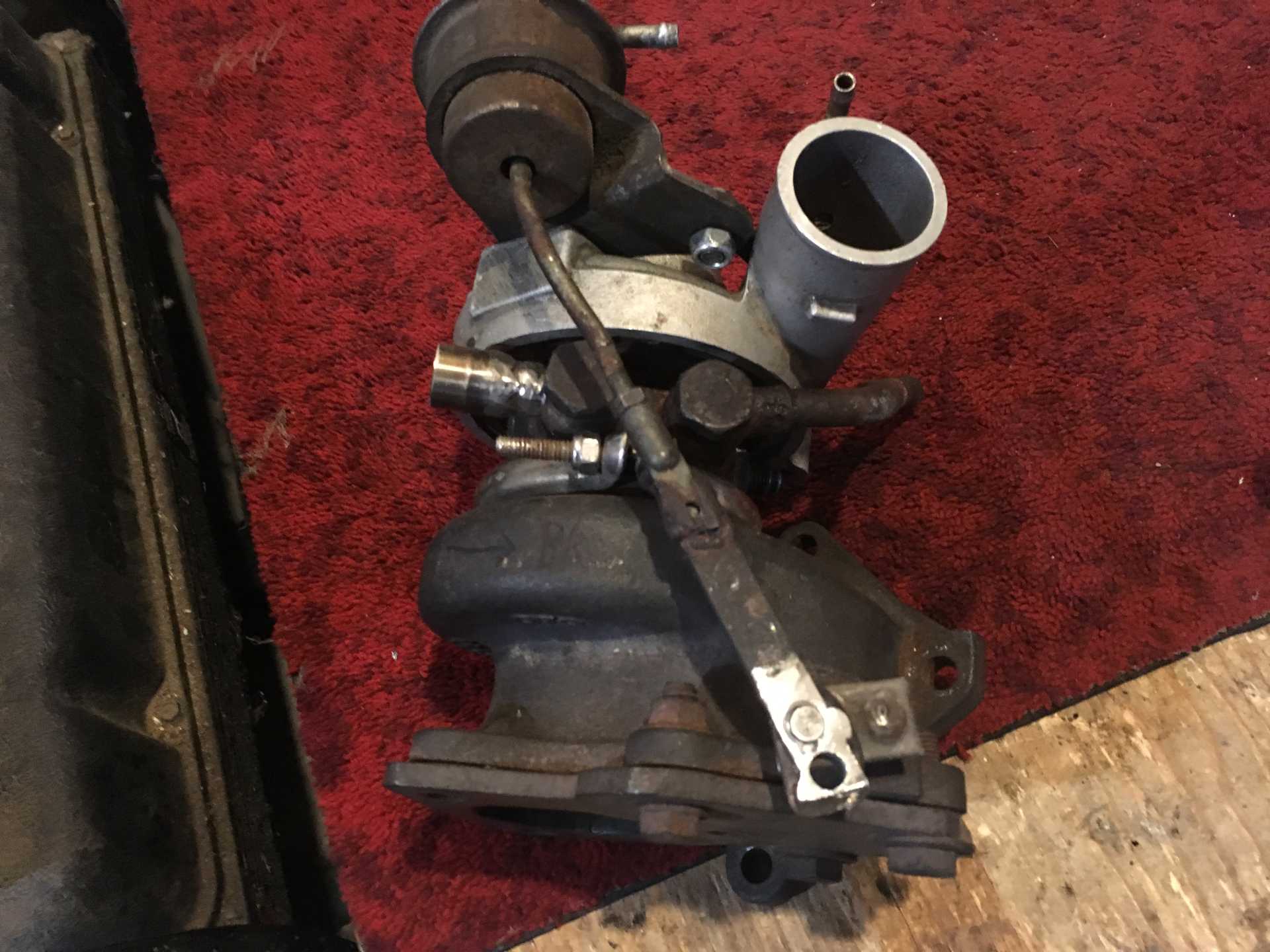 Turbo is ready for install now. Wastegate is on and setup and I welded up a pipe stub for one of the coolant feeds because the original tube was going in the wrong direction. Filled it up with hot water and did not see any leaks. No time tomorrow to work on it but on thursday I will bolt the turbo on and run the oil and coolant feeds and then put it up on the hoist and get the exhaust on.